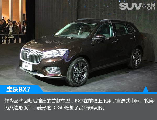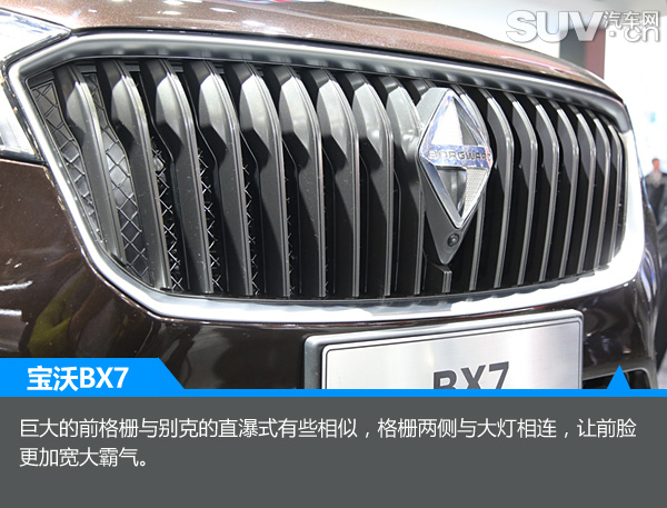 作为品牌回归后推出的首款车型,BX7在前脸上采用了直瀑式中网,轮廓为八边形设计,菱形的LOGO增加了品牌辨识度。