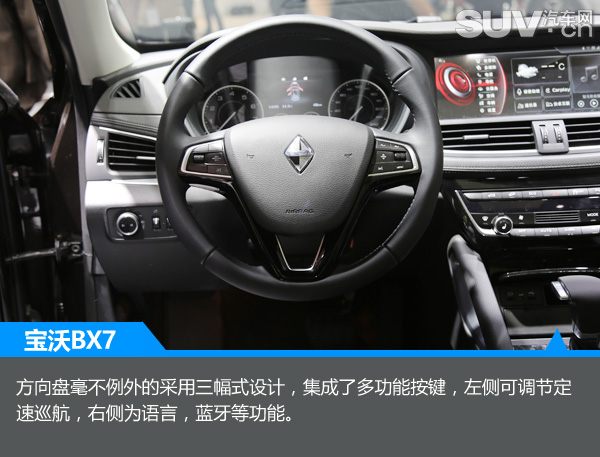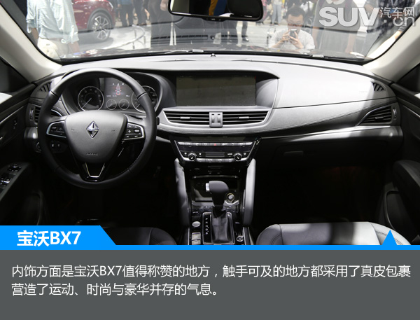 内饰方面是宝沃BX7值得称赞的地方,触手可及的地方都采用了真皮包裹,营造了运动、时尚与豪华并存的气息。