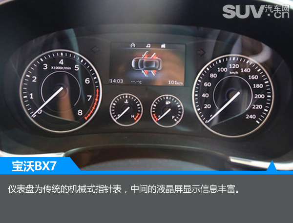 仪表盘为传统的机械式指针表,中间的液晶屏显示信息丰富。