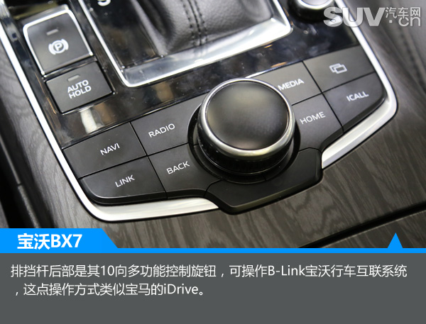 排挡杆后部是其10向多功能控制旋钮,可操作B-Link宝沃行车互联系统,这点操作方式类似宝马的iDrive。