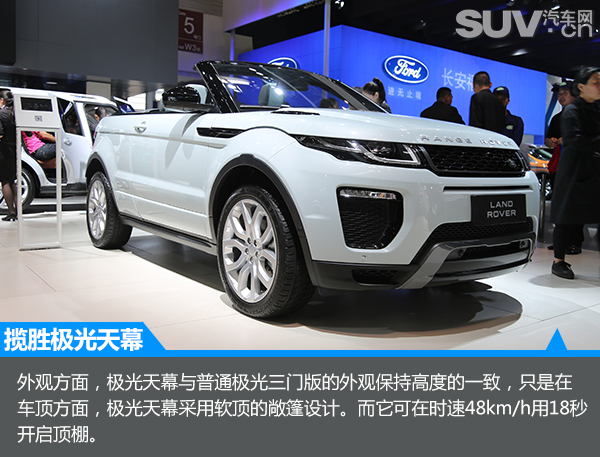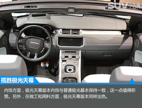 在本届的北京车展上。路虎来带了揽胜极光的天幕版本,而熟知这款车型的朋友一定知道,早在2012年日内瓦车展上,它的概念车就以推出,当时它的造型离量产版只差一步之遥。而在今天的北京车展上,我们终于看到它的庐山真面目。下面,让我们一起走进极光天幕的内心世界。