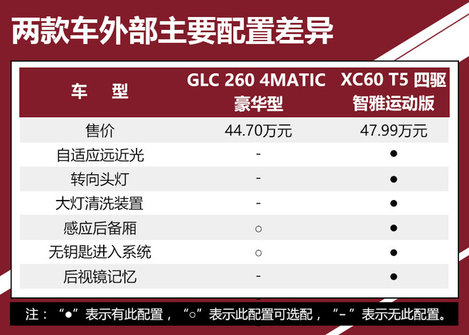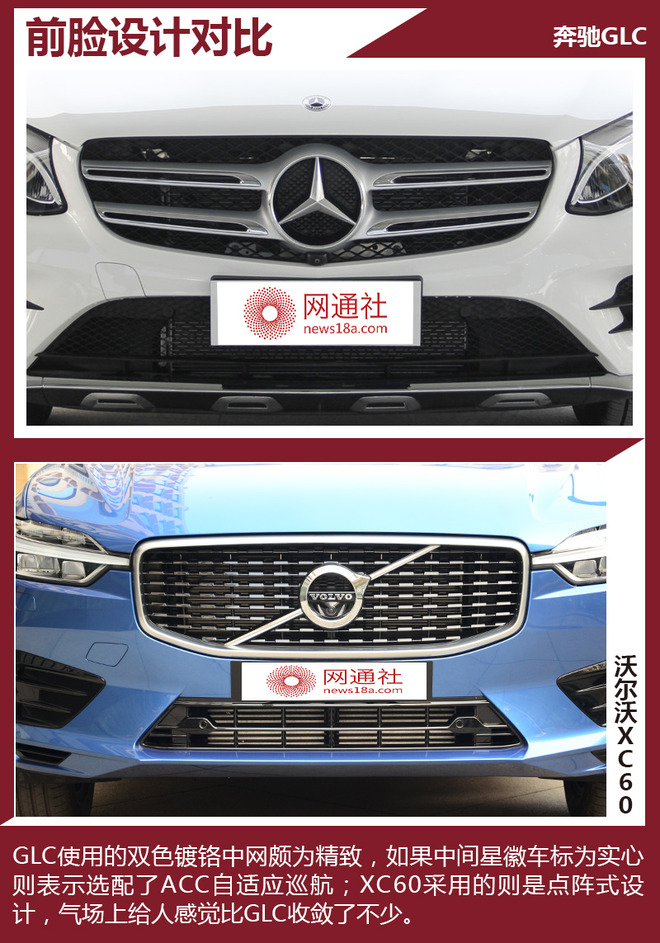 谈到中型豪华SUV车型,肯定跑不开BBA老三样的话题,虽然每款车都有其鲜明的特点和定位,但对于消费者来说看了多年还是有些审美疲劳。而就在去年冬天经过十年磨一剑的沃尔沃XC60终于迎来换代,其安全配置几乎武装到了“牙齿”;而它与奔驰GLC形成了两种方向,后者更倾向于沉稳,优雅风格。因此我们今天就将这二位对手摆上台面,来一场真刀真枪的对比。